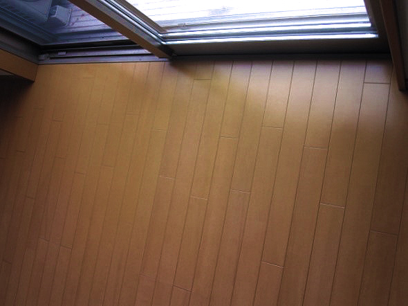2025.08.31 リペア フローリング色あせ改善(リペア) 窓際のフローリング 色褪せの改善いたしました(リペア)全体 before after フローリング色あせ改善(リペア) フローリングタイヤ痕のリペア